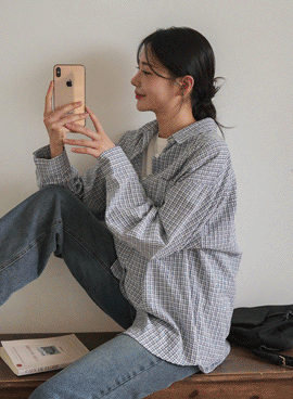 임부복*내추럴체크라벨 베이직셔츠