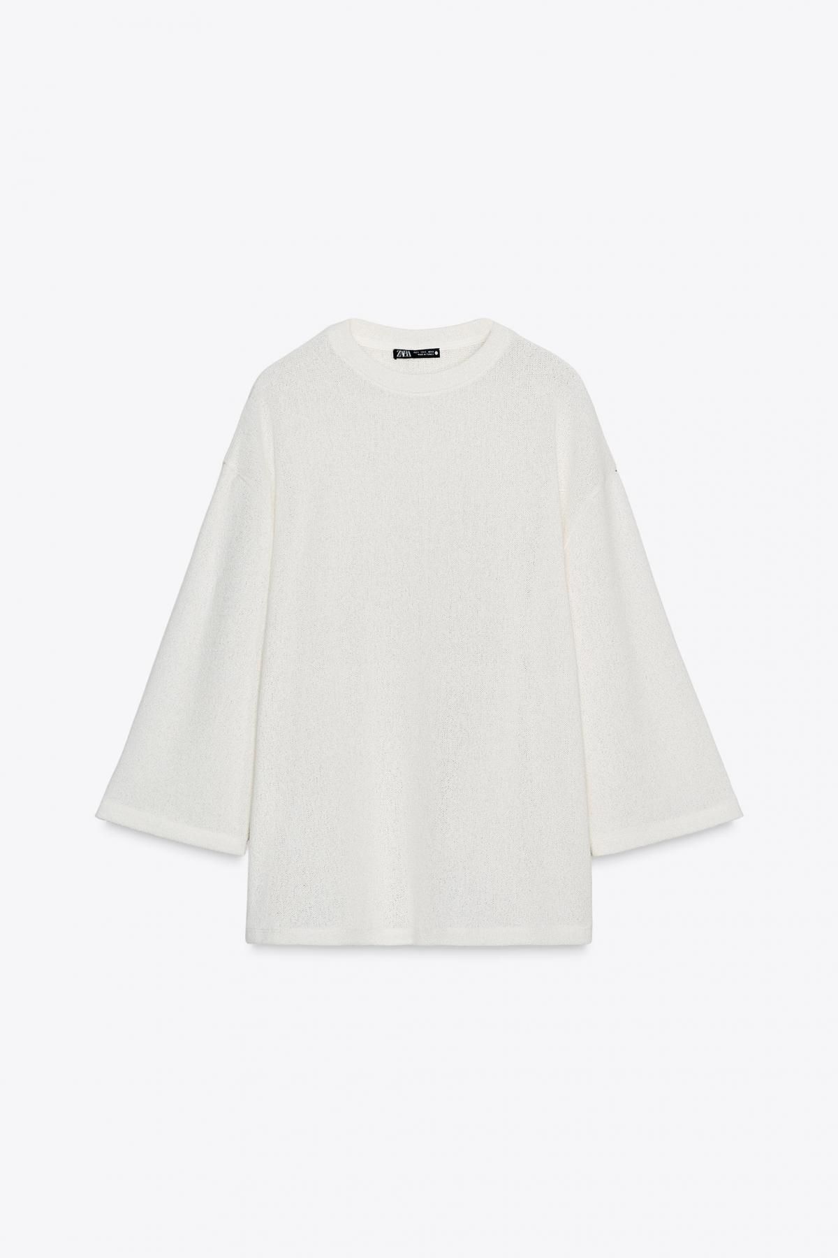 자라 오버사이즈 라운드넥 화이트 니트 티셔츠 1198/459/712 ECRU