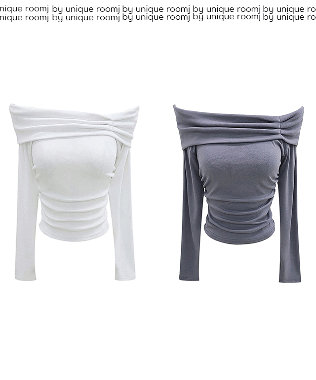 [몸매보정🖤/팔뚝살커버/청순섹시/허리잘록/힙한/y2k/유니크/레이어드/밑단굴림/굴림티/블라우스/차콜] 플립 슬림핏 옆 셔링 드레이프 언발란스 사선 오프숄더 세미 크롭 긴팔티셔츠