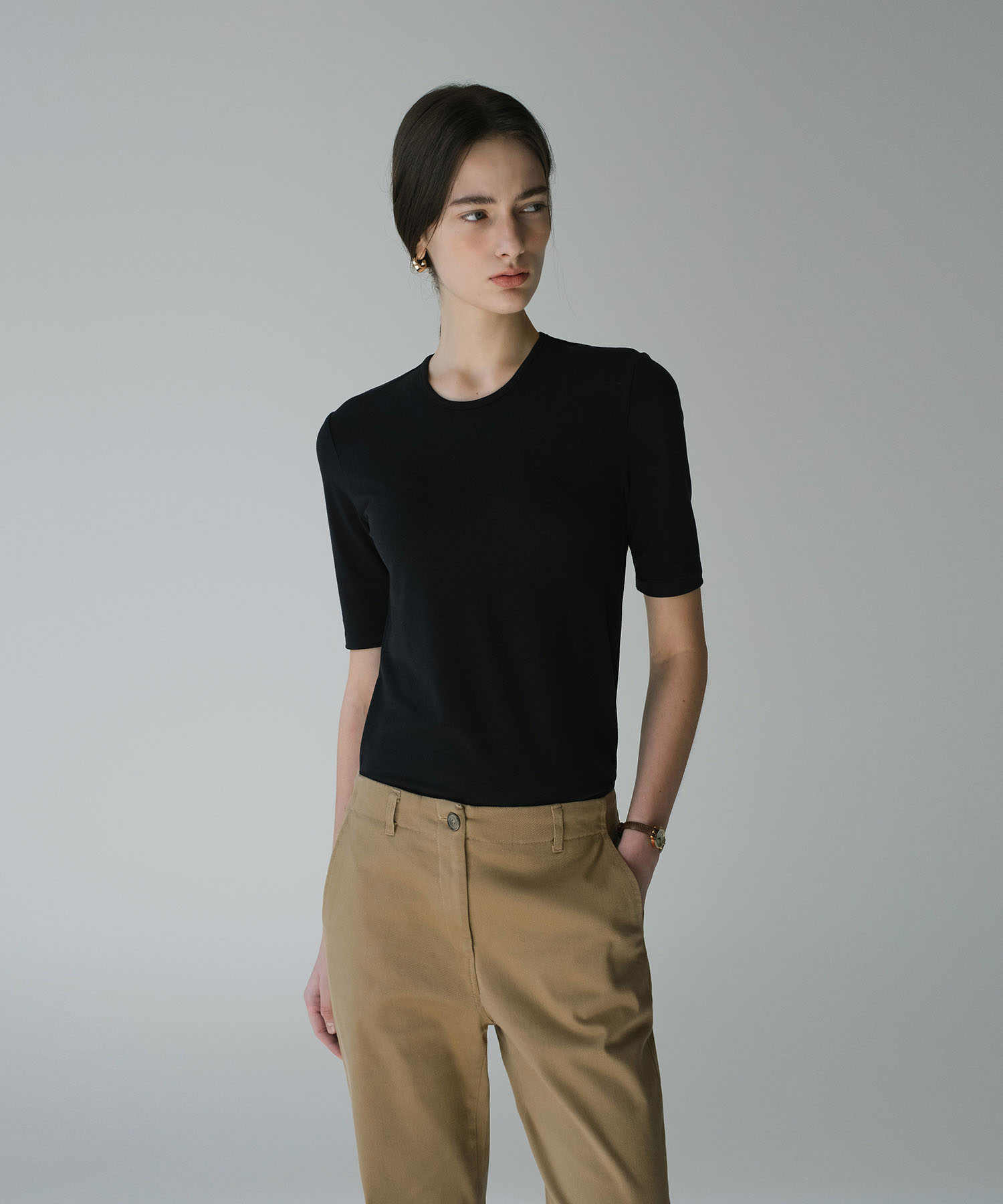 SITP5228 울 블렌드 소프트 5부 티셔츠_Black