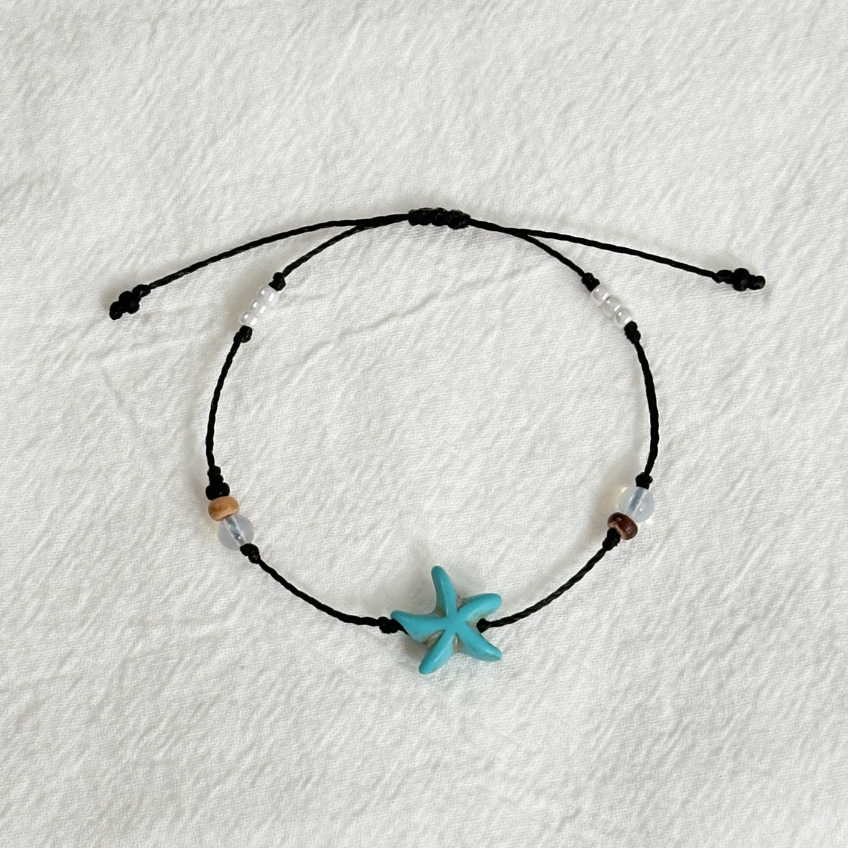 [made] 블루 불가사리 원석 실팔찌 끈 우드 비즈 매듭 팔찌