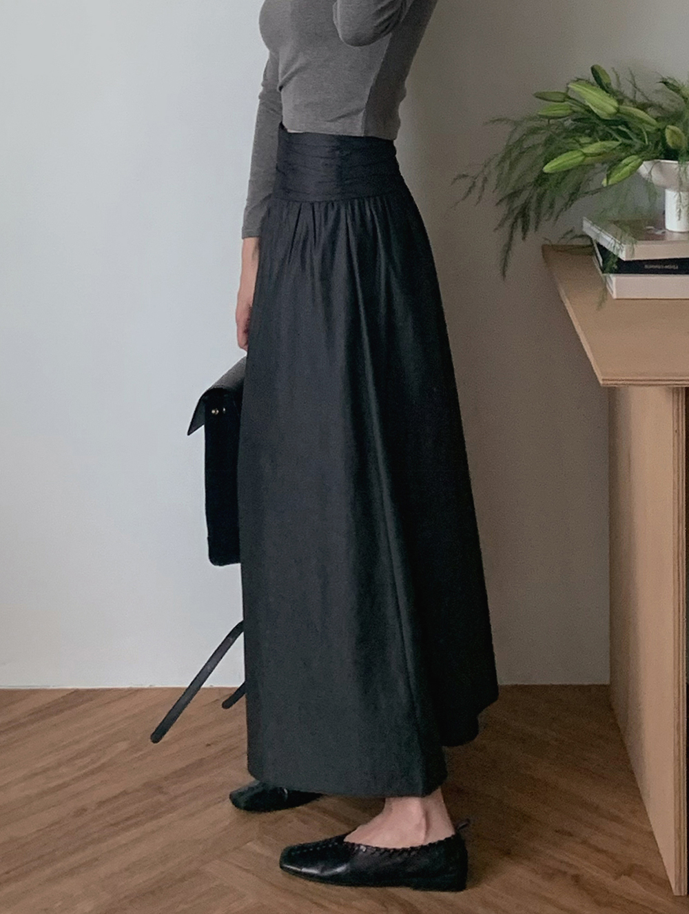 로이비에 플레어 스커트가을/봄/롱/플레어/스커트/치마/하객룩/유럽여행룩/간절기/출근룩/흑청