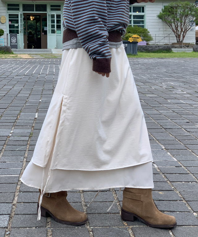노리엘 레이어드 리본 롱 스커트