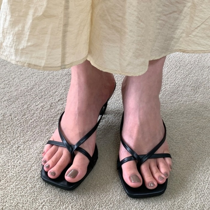 스퀘어 V컷 스트랩 쪼리 뮬 슬리퍼힐 6cm/9cm_OMM5673●
