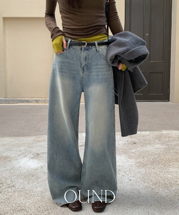 [made/4size] 칸프 뒷절개 와이드 데님 팬츠 -3color (와이드청바지/세미와이드팬츠/절개청바지/워싱청바지/데님팬츠/빅사이즈/데일리룩/하객룩)