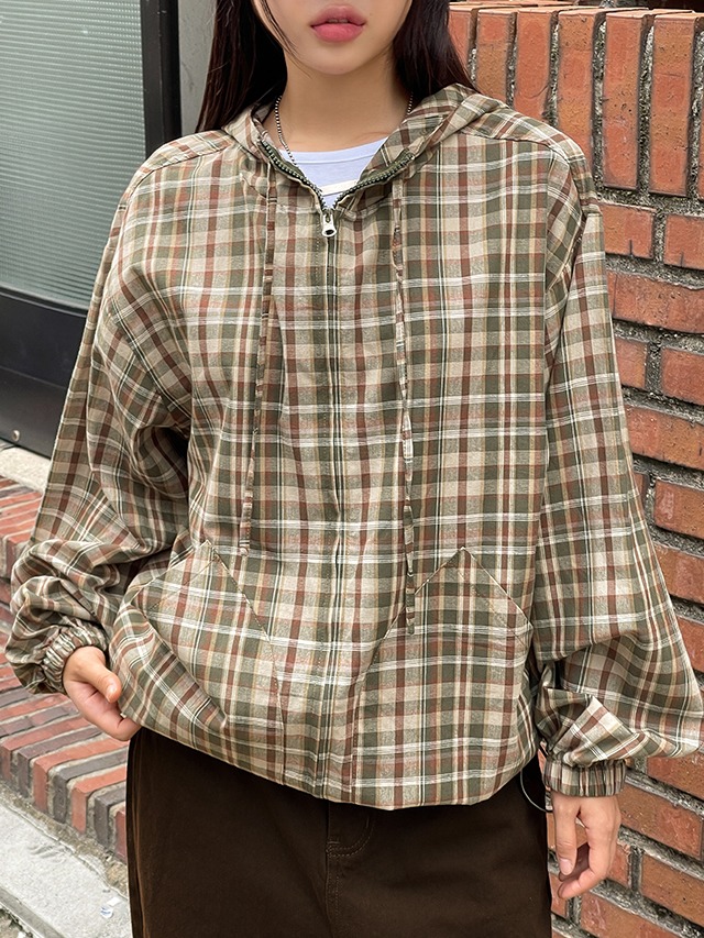 빅사이즈 55-88 웨이믄 남녀공용 투웨이 스트링 체크 긴팔 후드 집업