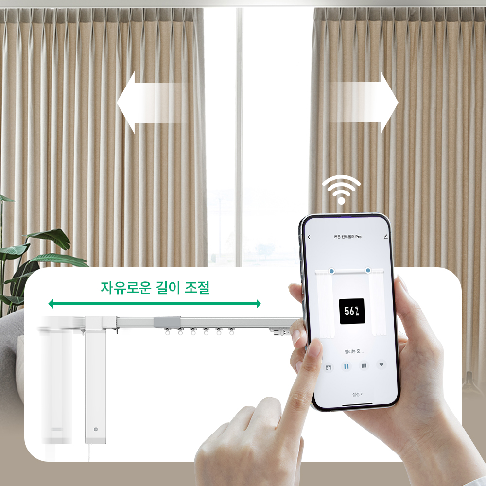 헤이홈 길이조절형 스마트 IoT 전동 커튼 자동 모터 레일 리모컨 패키지