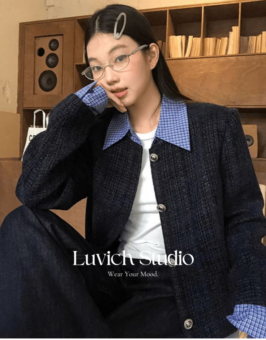[L,XL/통통녀💗] 배색 체크 디테일 트위드 자켓 (가을룩,데일리룩,빅사이즈,출근룩)