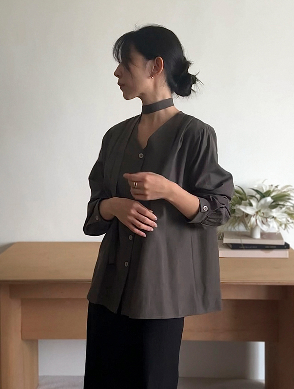 Soil tie blouse가을/타이/브이넥/블라우스/하객룩/루즈핏/출근룩/네이비/브라운/봄/간절기