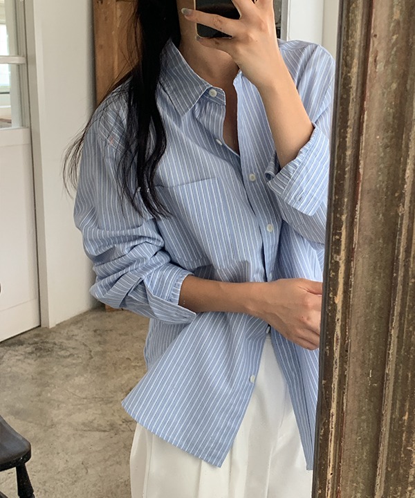 [made] 넘버드 스트라이트 셔츠 (간절기/스탠다드/오버핏/남방/긴팔)