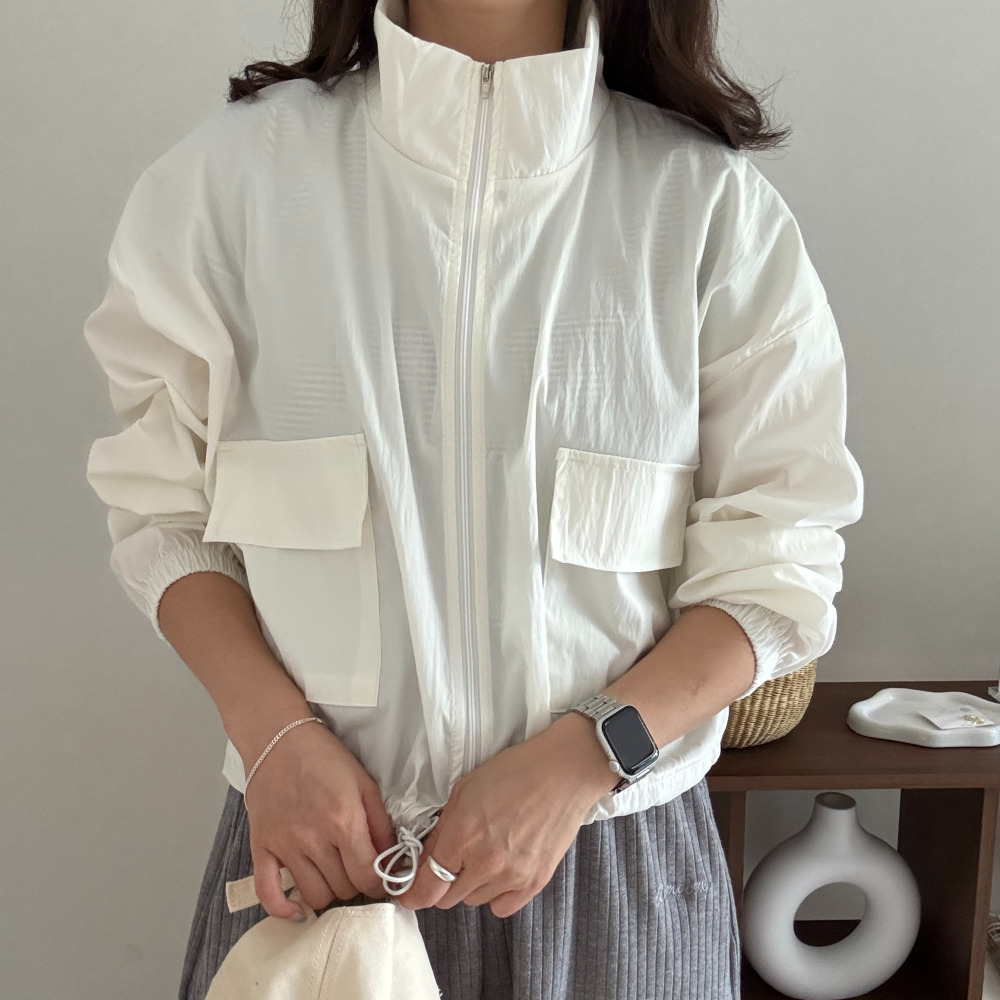 여성 간절기 크롭 바람막이 여름 가을 숏 자켓 등산 블루종 우븐 무지