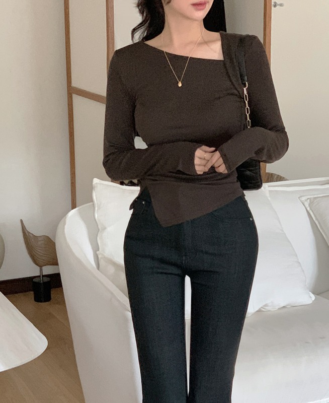 [🎁라스트할인30%][🤍연말룩/하객룩/오프숄더][MADE] 언발 볼레로 셔링 트임 티셔츠