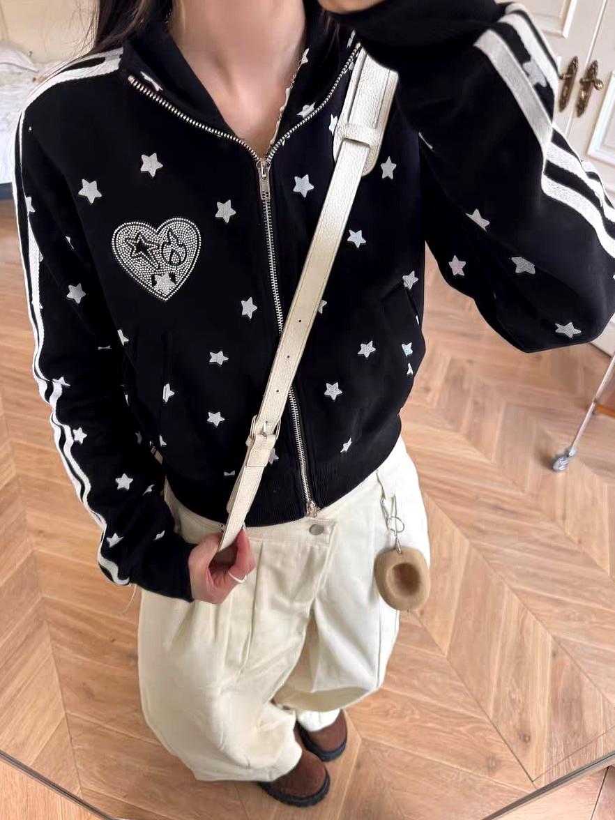 3컬러 트랙탑 별 스타 크롭자켓 크롭져지 y2k 블록코어룩 아이돌코디 블랙 화이트 집업