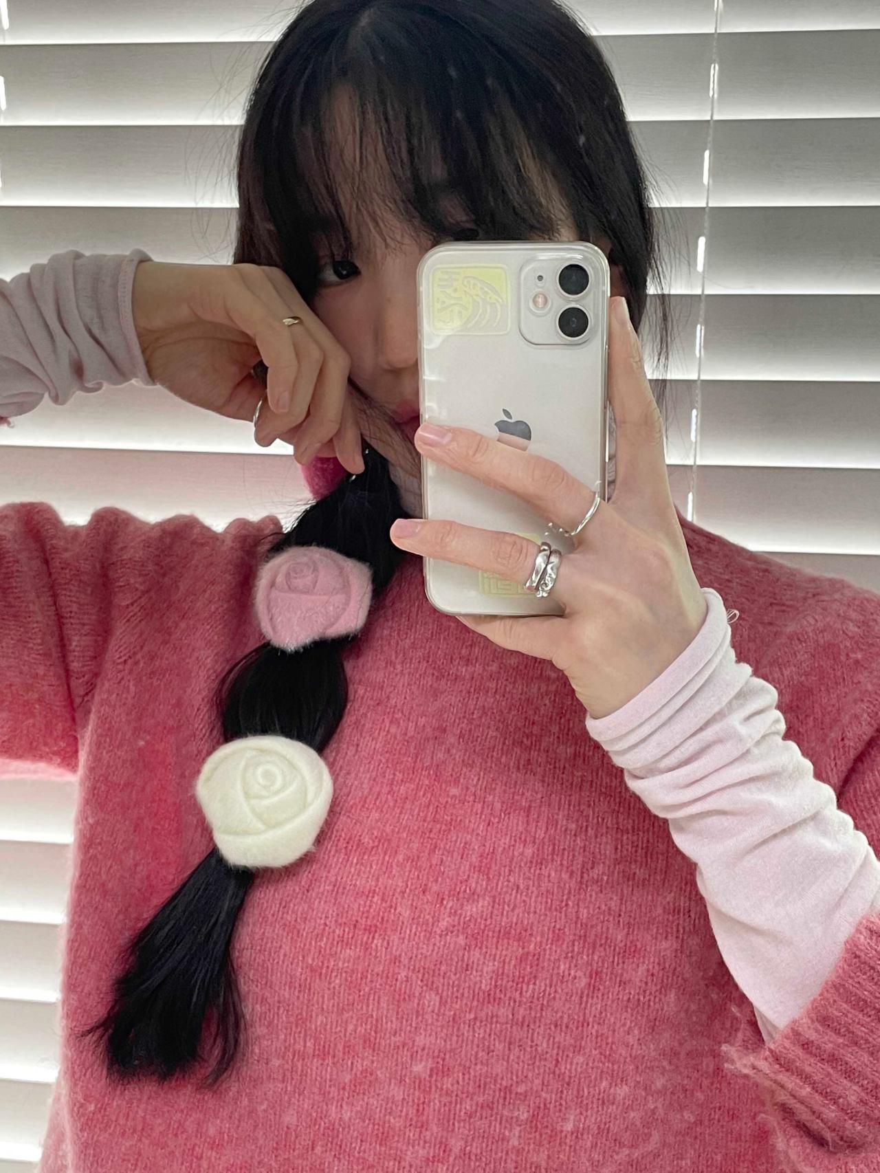 겨울 장미 로즈 헤어 밴드 끈 청순 로우번 포니테일 반머리 반묶음 포인트 피크닉 여행 나들이 코트 데이트 오피스 캠퍼스 데일리 우정 시밀러 룩 친구 선물