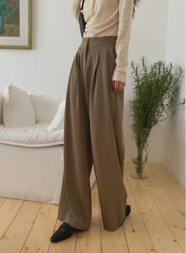 와이드슬랙스 하이웨스트 더블핀턱 주름 밴딩 스판 간절기 봄 가을 여성 뮤라이 모노폴리 팬츠