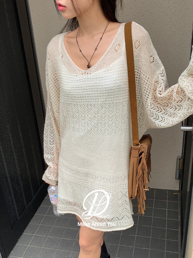 [MADE] 빅사이즈 44-110 토브텐 빈티지 브이넥 펀칭 루즈핏 울 긴팔 니트