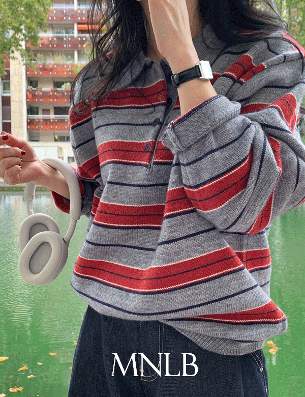 [단독] ❄️[1만장돌파/럭비니트/카라니트/직진배송][MNLB] 시나몬 멀티 스트라이프 버튼 카라 니트