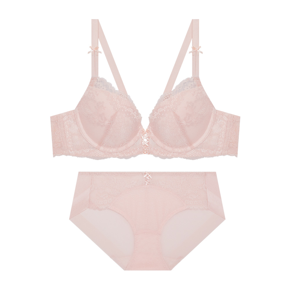 페미닌 코르셋 레이스 브라 팬티 세트 - 라이트핑크