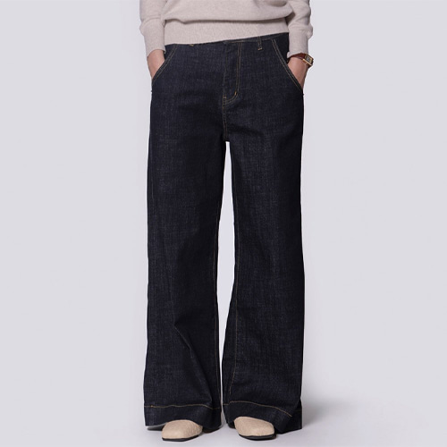라인이 이쁜 데님스판 생지청 반밴딩 통일자팬츠