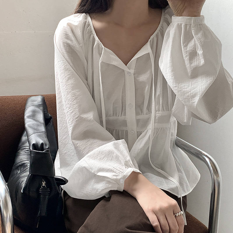 [1천2백장돌파✨/로맨틱무드/여리여리][+S,M,L사이즈][Made]라미 스트링 셔링 블라우스 - 2 color