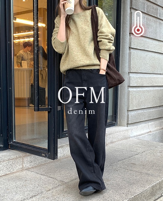 [+기모ver][ofm] 흑청 메르 사선절개 와이드 (denim pants)
