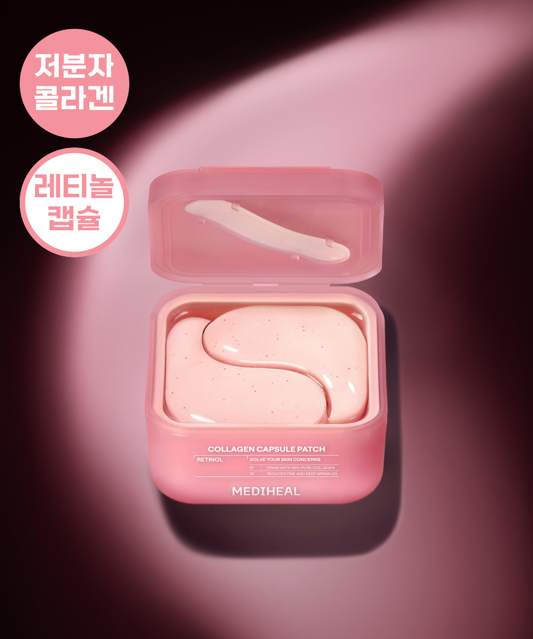 사용방법1. 세안 후 피부를 정돈한 뒤 내장된 스패츌러를 이용하여 패치를 꺼내 양쪽 눈 밑에 붙여 줍니다. 2. 약 20~30분 후 패치를 떼어내고 남은 앰플을 가볍게 두드려 흡수시켜 줍니다. TIP. 눈 밑 외에도 팔자, 이마, 목 등 주름 케어가 필요한 다양한 부위에 사용 가능합니다.