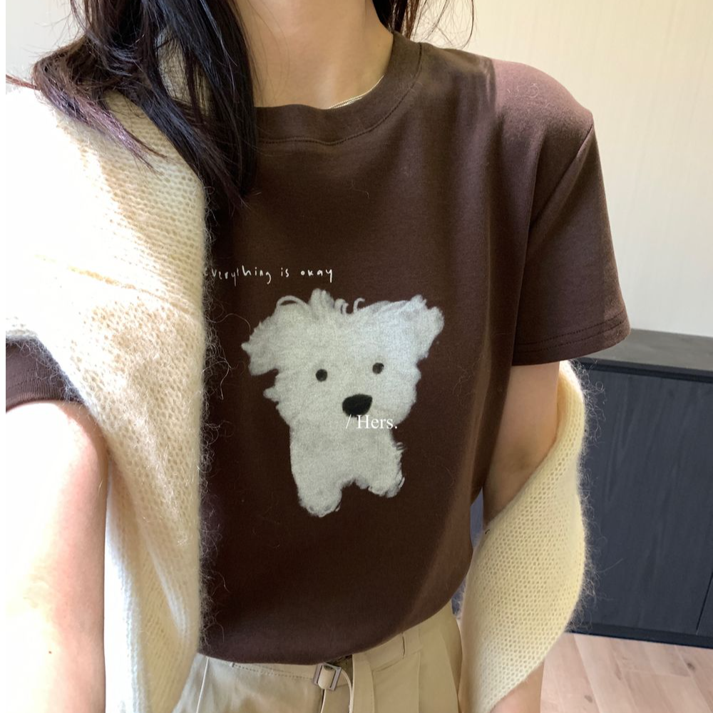 [🐻귀여움 한가득] 강아지 프린팅 코튼 반팔티 -2color