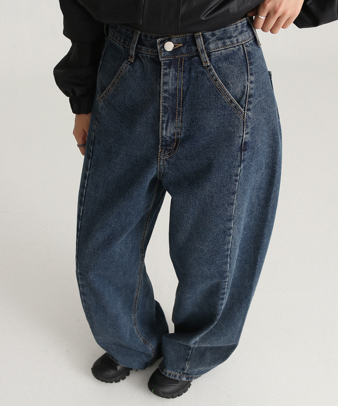 [made] 커브 포인트 배럴 와이드 팬츠