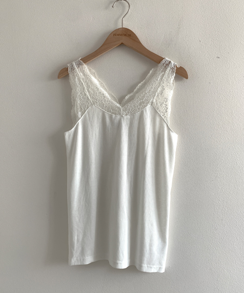 (Vintage)Lace V Neck Sleeveless Top(Ivory)