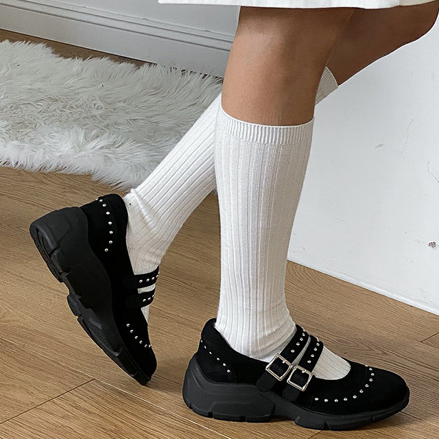 [굽5cm/225~250] 통굽 로퍼 라운드 스웨이드 키높이 스트랩 버클 부시-신발