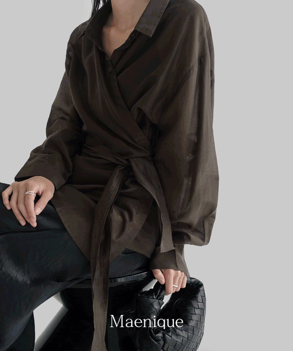 [MNQ] 베일리 시스루 오버핏 텐셀 랩 셔츠