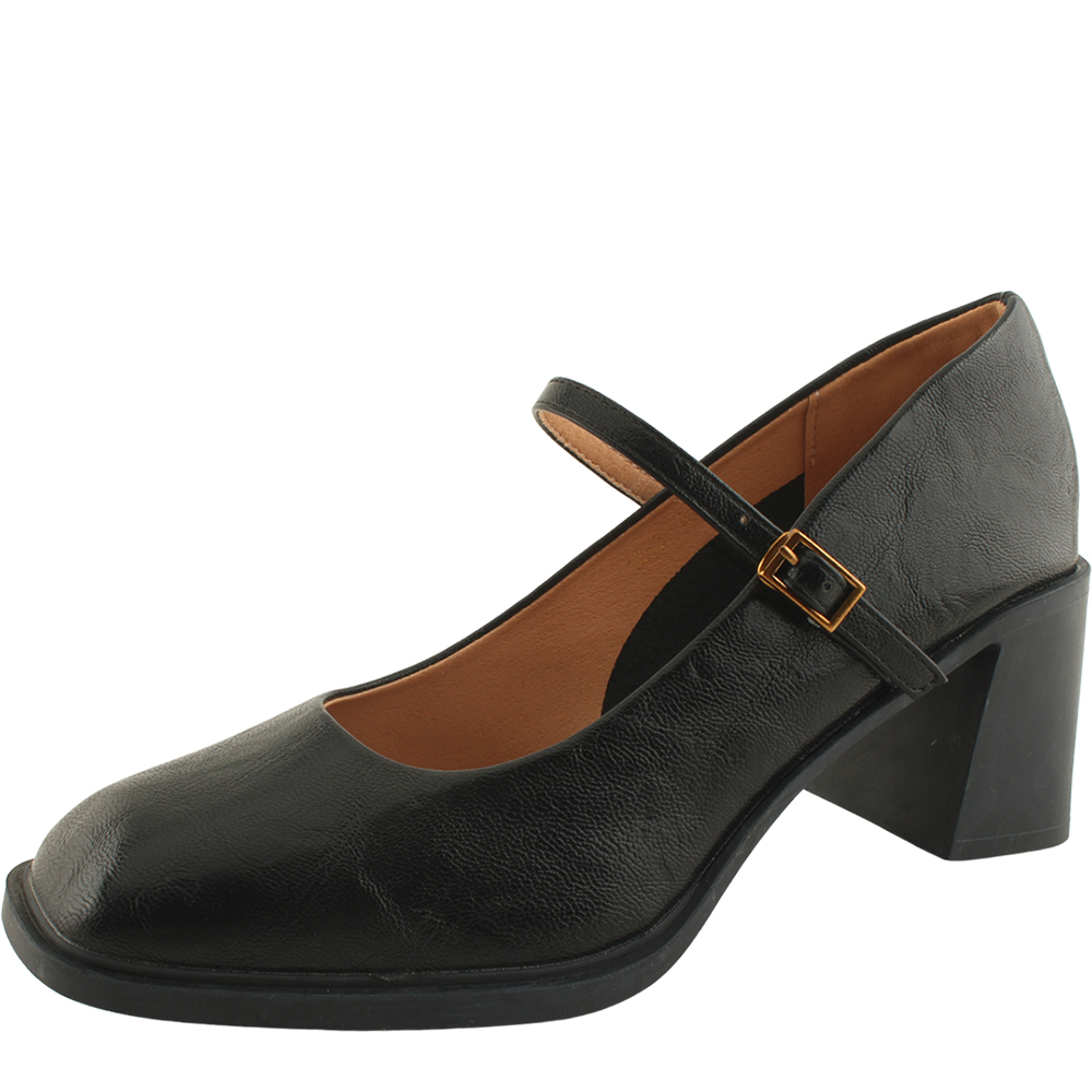 양가죽 심플 스퀘어토 메리제인 미들힐