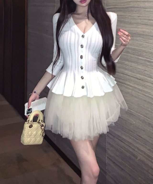 프릴 니트 탑+발레핏 튤 스커트 투피스 세트 (코디세트) 3591923