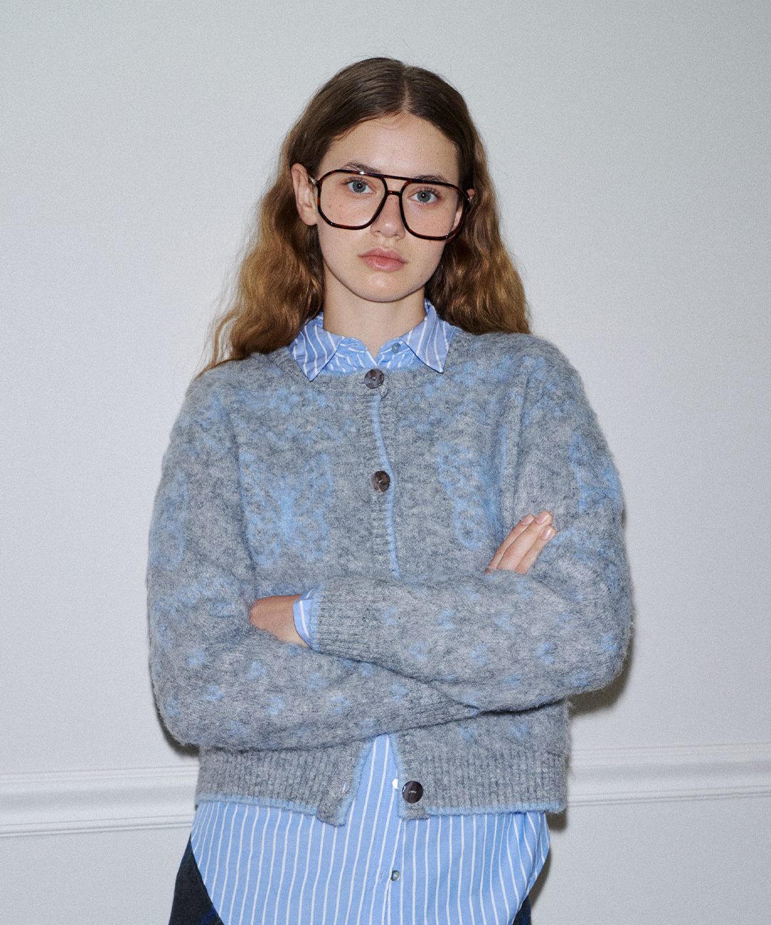 헤어리 나비 니트 가디건 (2C) (Gray)
