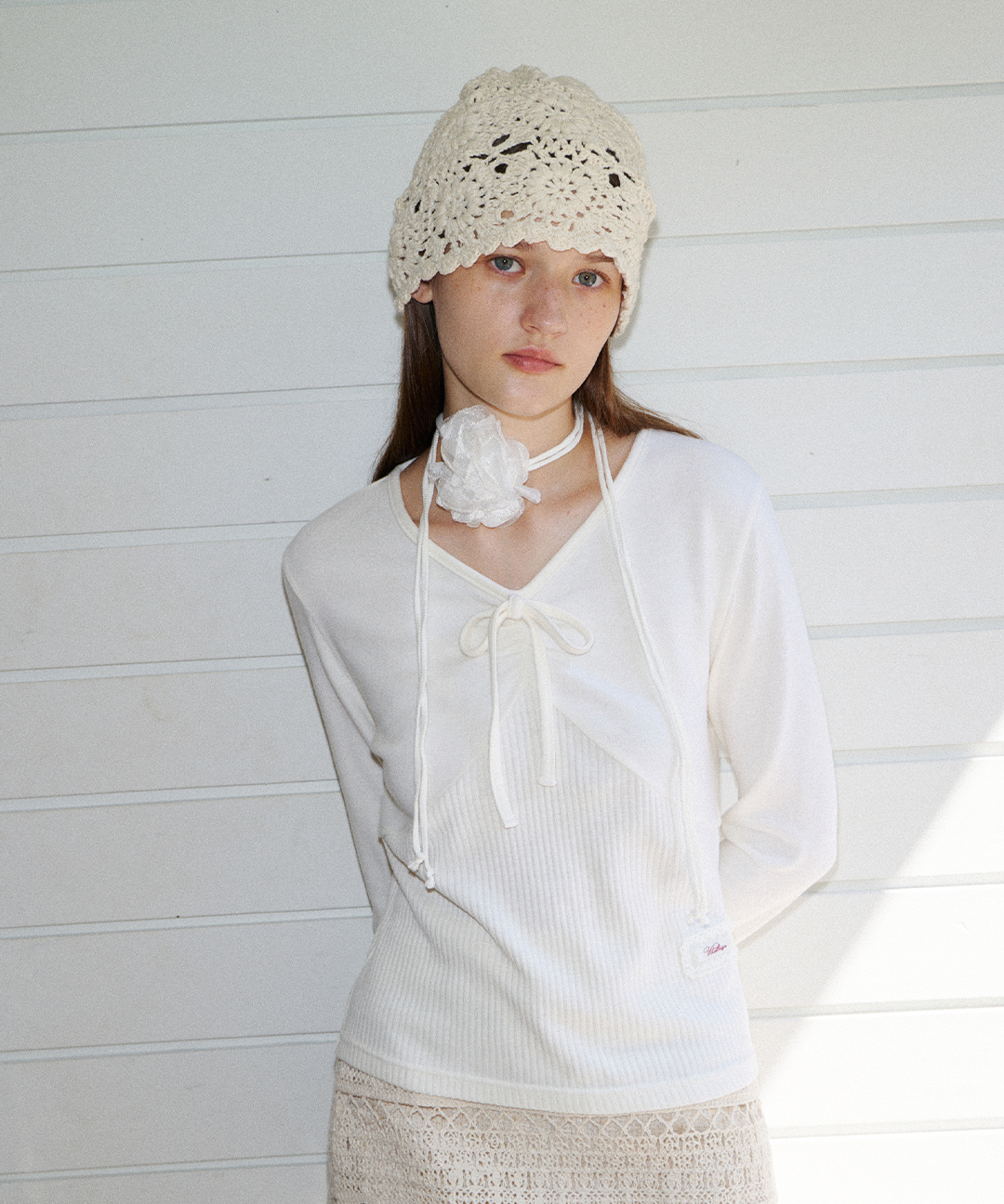 리본 셔링 티셔츠 (2C) (Ivory)