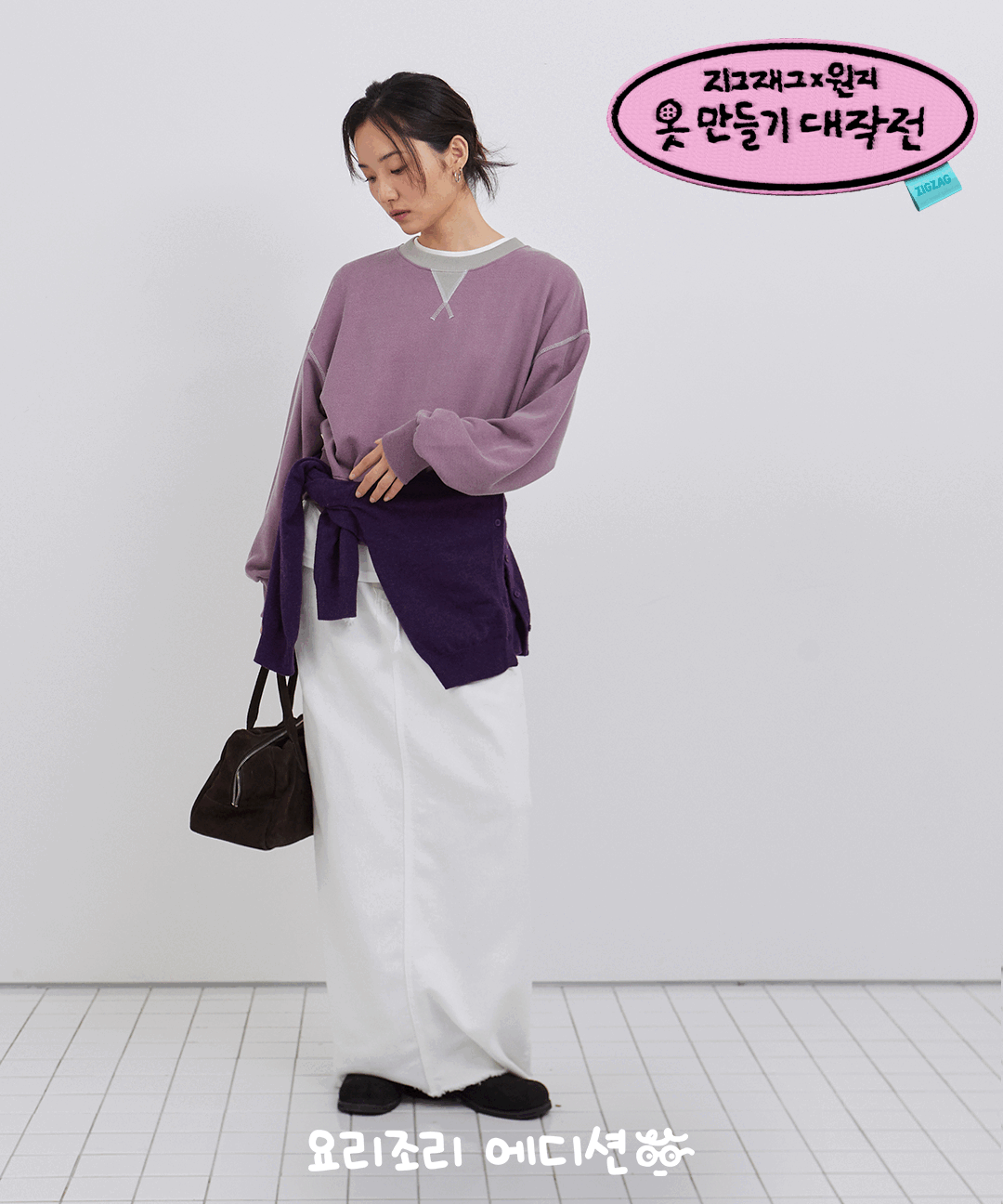[원지X지그재그] 피그먼트 배색 쭈리 맨투맨-3color-요리조리 에디션