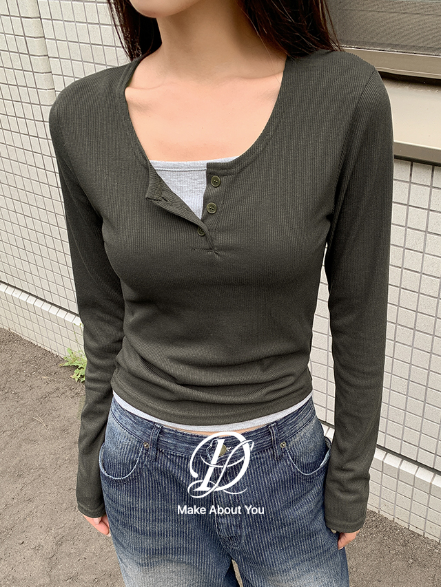 [MADE] 에드닝 6컬러 헨리넥 골지 레이온 슬림핏 베이직 긴팔 티셔츠