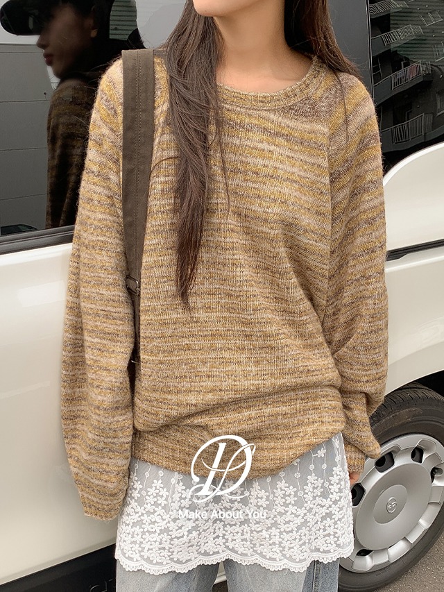 [MADE] 빅사이즈 44-110 프리칸 울 믹스 스트라이프 래글런 오버핏 긴팔 니트