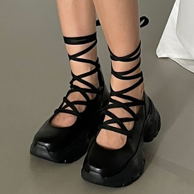 [굽6cm/230~250] 통굽 로퍼 키높이 가보시 스트링 끈 살진-신발