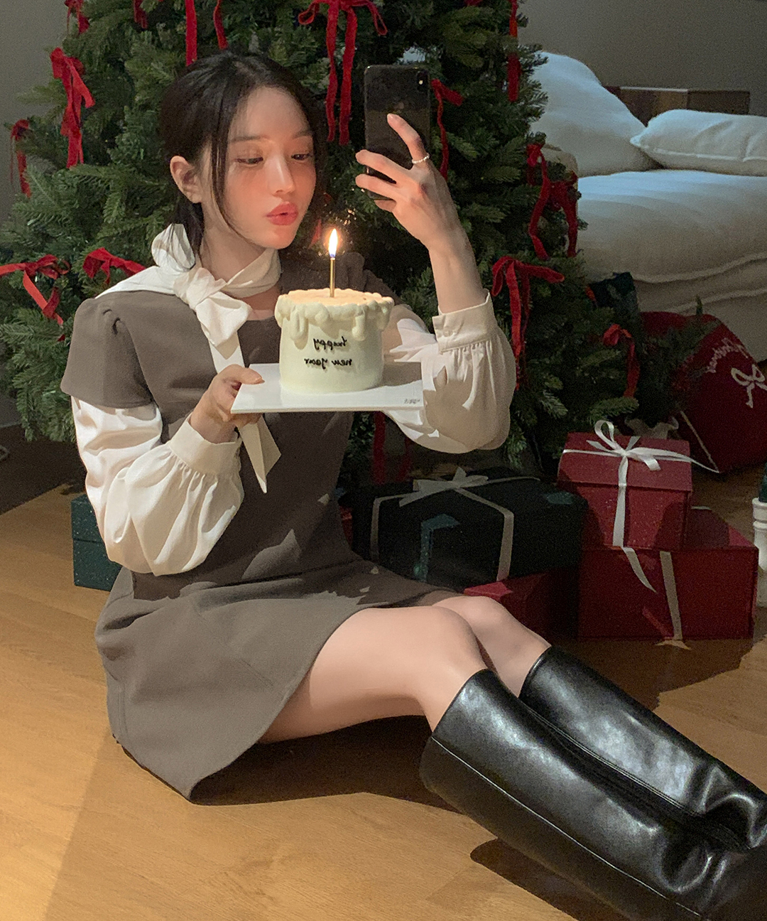 [MADE]샤잇 타이 플레어 미니 원피스 (S-L/하객룩/연말룩/데이트룩/겨울원피스/겨울하객룩/플레어원피스/레이어드원피스/타이원피스)