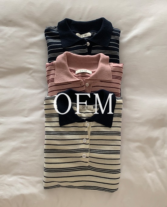 [무료배송][ofm] 심플 스트라이프 루즈핏 카라니트 (knit)(울6%)