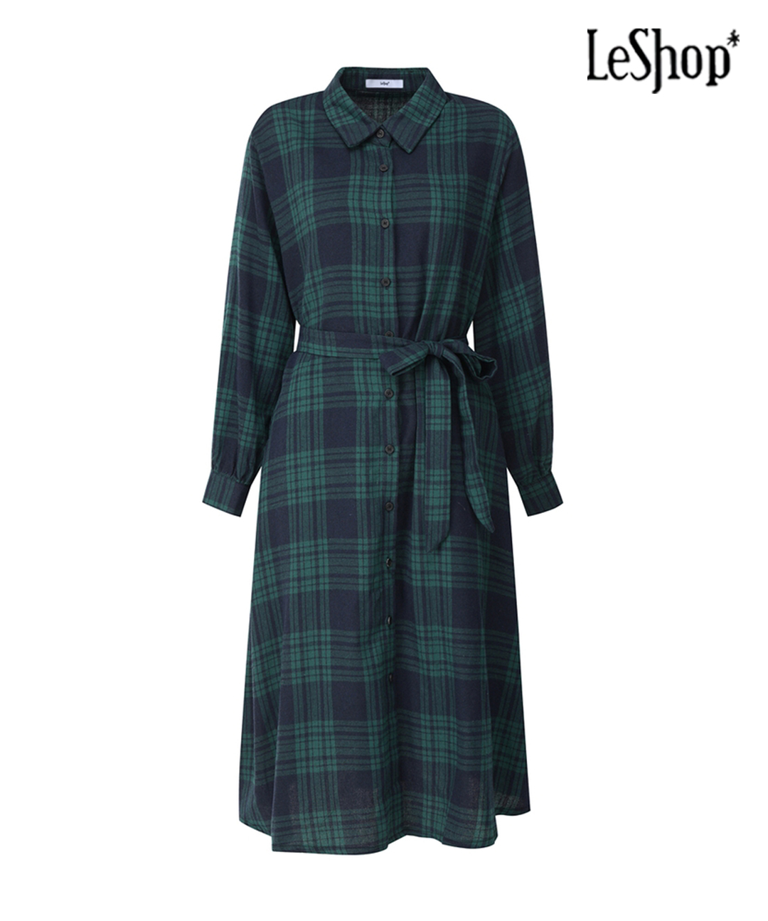[르샵] 체크 패턴 허리끈 셔츠형 원피스 (BP9OP017A)