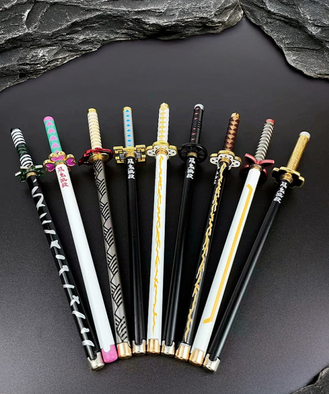 귀멸의칼날 볼펜 0.5mm 일륜도 귀칼 미니 검 칼 모형 뚜껑펜 중성펜 버전2