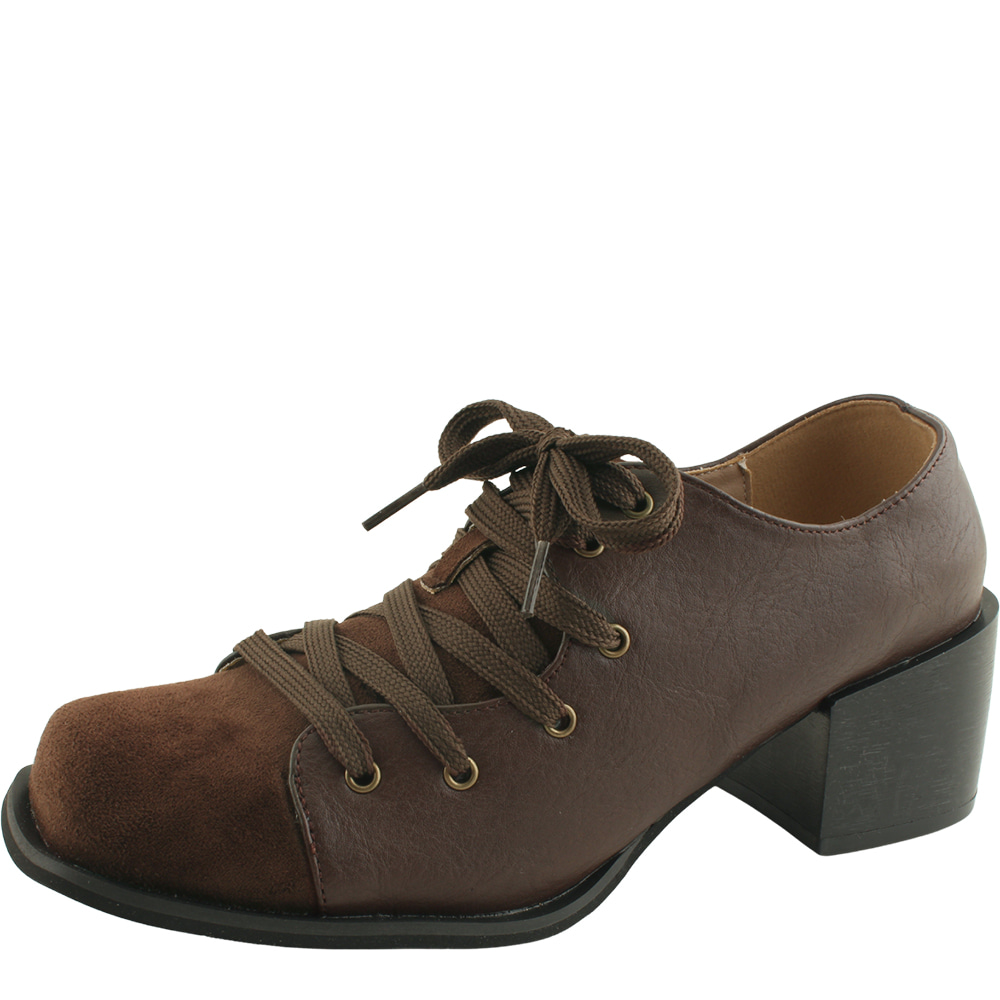스웨이드 투톤 로퍼 통굽 미들힐 5cm 브라운