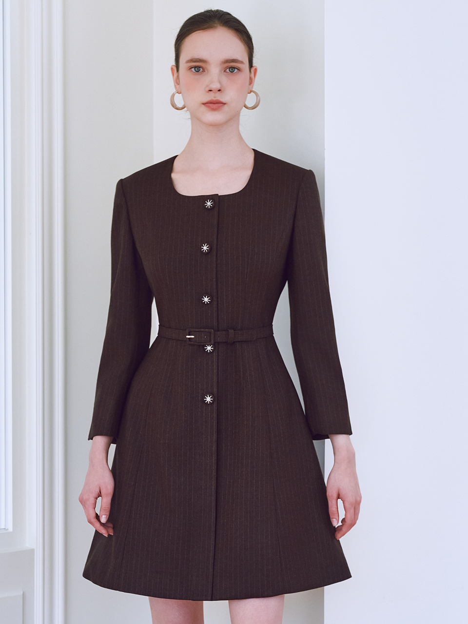 25FW Calla128 GBTN Ella Stripe Dress Brown