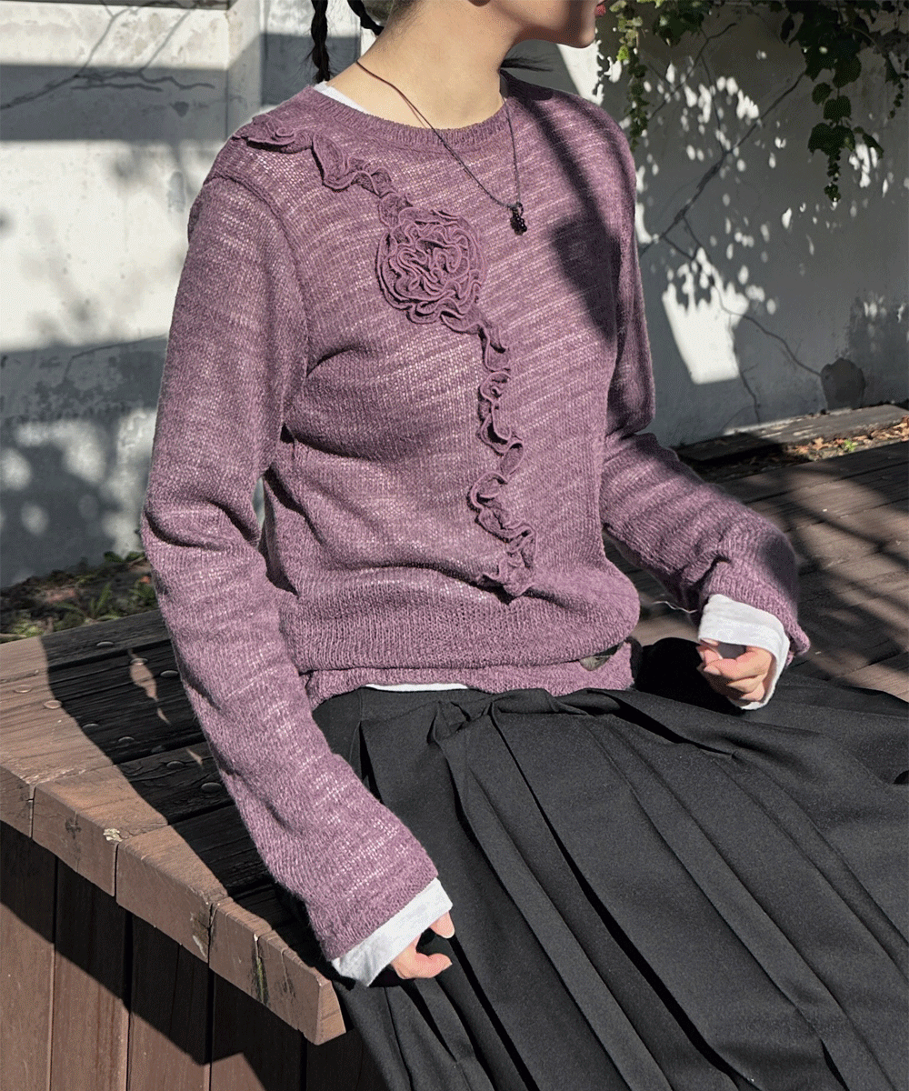 (3color) 플라워 블룸 시스루 니트