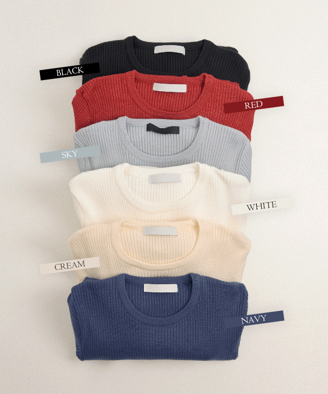 퍼스트템 골지 라운드 니트 티셔츠 - 8color