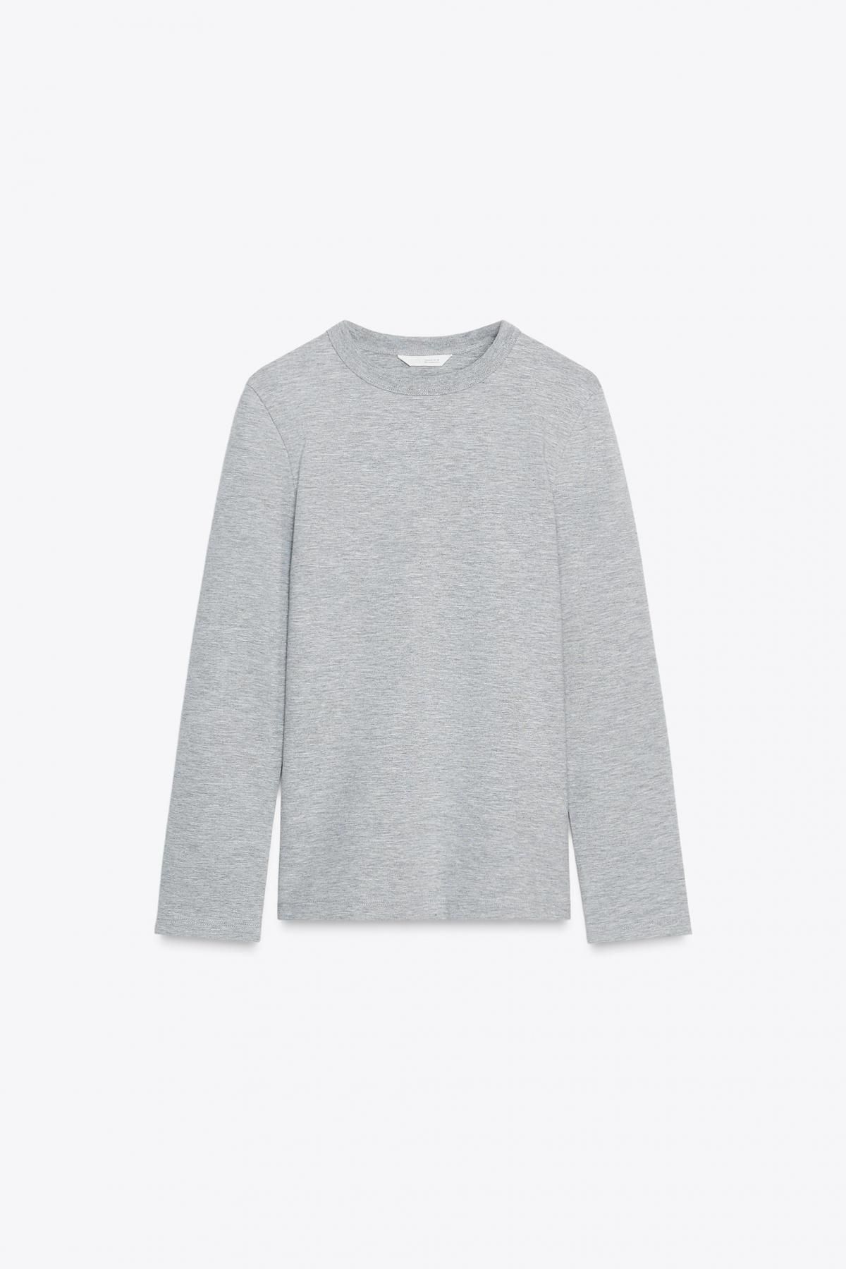 자라 테크니컬 라이트그레이 라운드넥 베이직 긴팔 티셔츠 4174/660 GREY MARL