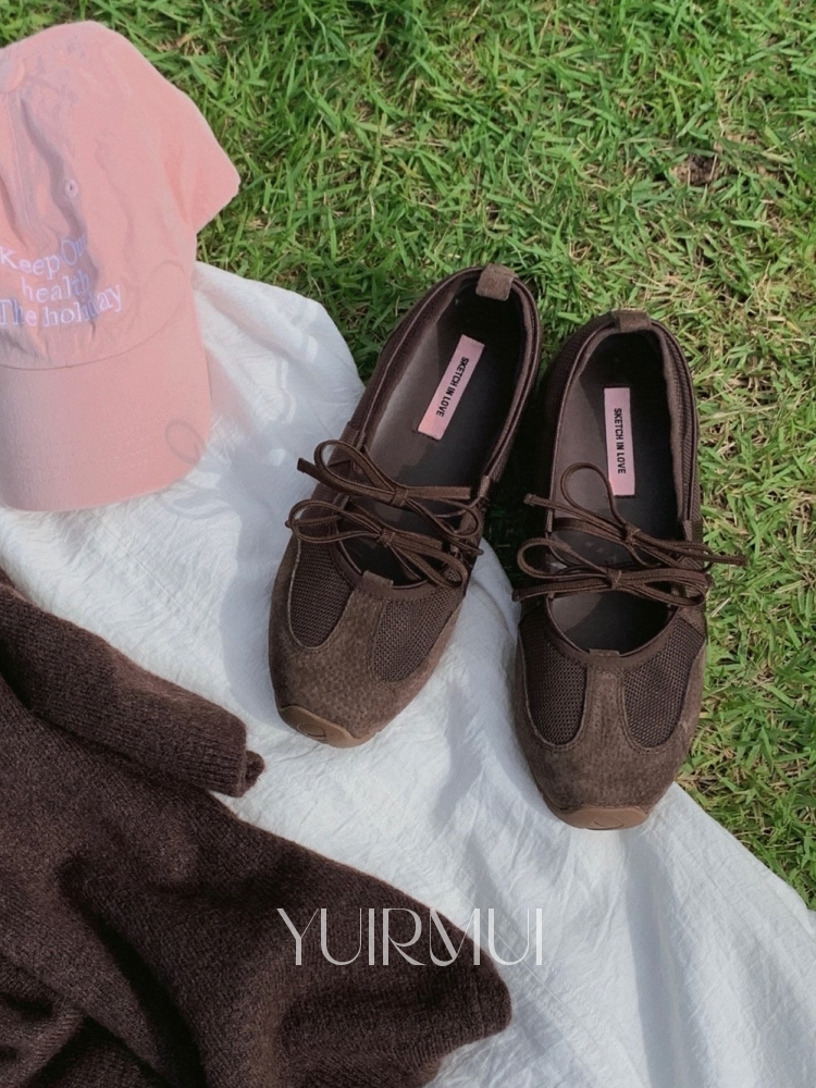 리우 스포티 리얼 돈피 스웨이드 리본 플랫 스니커즈 1.5cm