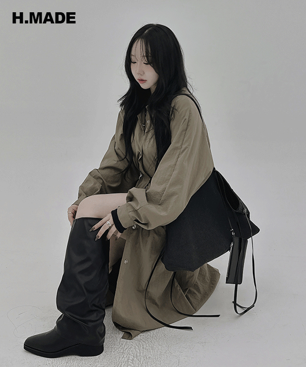 MADE #13828 트렌디 나일론 스트링 루즈핏 카라 롱야상 : 3color